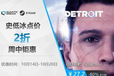 互动叙事巅峰之作《底特律:化身为人》现正开启发售以来最大力度促销!10月14日至20日期间,这款由Quantic Dream打造的科幻巨制将以2折史低价27.2元登陆Steam平台,相当于一杯奶茶的价格即可体验这场关于人性与觉醒的史诗级冒险。