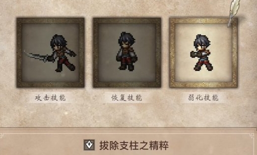 在 HD-2D 风格的经典 JRPG 前传《歧路旅人 0》中,“拔除支柱之精粹” 是一款极具战略价值的单体削弱类技能道具,凭借 “双属性减益” 的独特效果,成为玩家应对强敌、创造安全输出窗口的核心战术工具,尤其在挑战高难度 BOSS 或精英怪物时,能发挥不可替代的作用。这款道具的核心功能是对敌方单个目标同时施加降低物理攻击与物理防御的双重减益效果,且该效果可持续 2 回合,既能削弱敌人的输出能力、提升我方队伍的生存安全性,又能为我方物理输出角色创造更高的伤害收益,其获取方式极为便捷,玩家在游戏开局的初始物品自选阶段即可直接解锁,无需后续通过复杂探索或任务挑战获取。