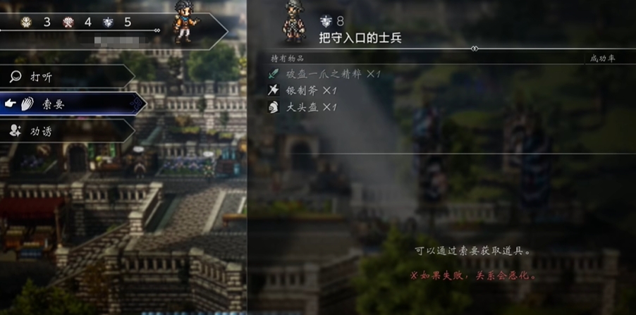 与把守入口的士兵对话后,玩家无需进行战斗或完成额外委托,只需在对话选项中选择 “索要”,士兵便会直接将 “破盔一爪之精粹” 赠予玩家,整个获取过程简单直接,耗时极短。这种 “对话即得” 的获取方式,让玩家在前期探索希亚特珀利斯时,能轻松将这款实用技能收入囊中,无需为收集道具花费过多时间精力,十分贴合前期快速提升战力的需求。