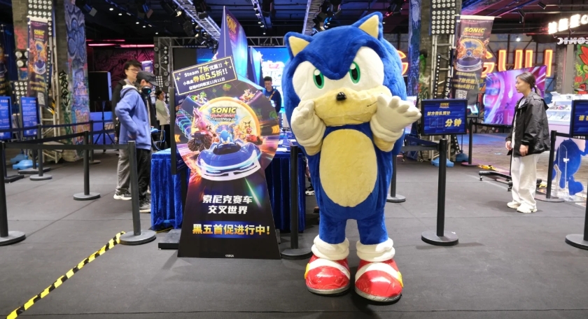 活动现场最引人瞩目的惊喜,莫过于 “刺猬索尼克” 专属人偶的现身。憨态可掬又还原度极高的索尼克人偶刚一登场,就迅速成为全场焦点,瞬间点燃了现场的人气与氛围。无论是刚接触索尼克的萌新玩家,还是追随系列多年的老粉丝,都纷纷围拢过来,争相与人偶合照留念,温馨又热烈的打卡画面,成为了本次活动一道独特的风景线。