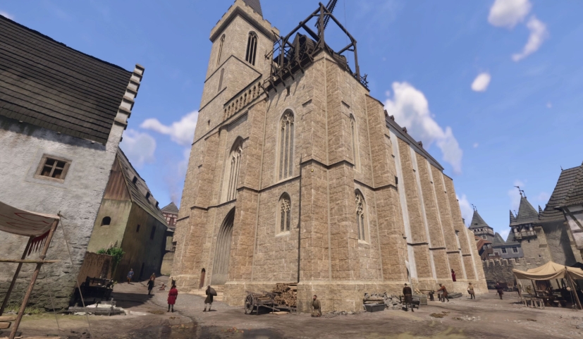 致敬《上古卷轴 5》膝盖中箭梗的衍生内容。主角亨利和头上插箭的 NPC 对话
